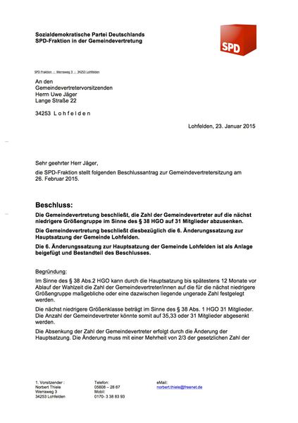 Bei der letzten Gemeindevertretung hat unsere Fraktion die Verkleinerung der Gemeindevertretung Lohfeldens von derzeit 36 (normalerweise 37) auf 31 Mitglieder vorgeschlagen.